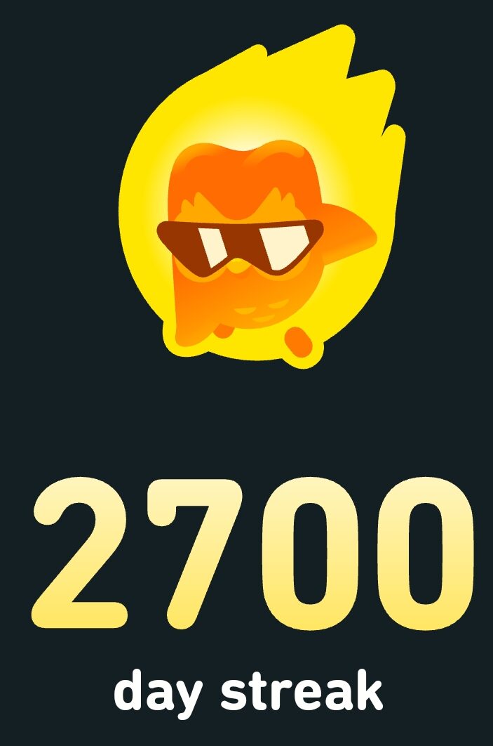 ついに、この数字を刻む日がやってきました。 Duolingo(デュオリンゴ)での連続学習記録が、本日で2,700日を突破しました!